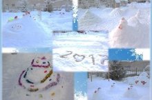 Стараниями участников конкурса на территории детского сада появились курочка, цыплята, снежная ёлка, и много других интересных снежных фигур.
