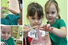 Ребята из татарской группы совместно с учителем-дефектологом совершили открытие - сами сделали настоящий слайм! Все вместе они попробовали надувать пузыри из слайма, помяли его, растянули