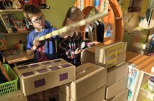 Интересная организация "уборки" конструктора "бабашки" превращает рутинное занятие в увлекательную игру, развивает у детей счет, координацию, навыки командной работы и самостоятельности.