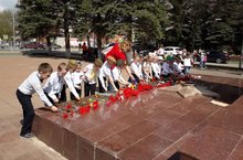 Воспитывать уважение к защитникам Отечества, памяти павших бойцов, ветеранам ВОВ; способствовать формированию чувства гордости за свой народ, его боевые заслуги; развивать духовно- нравственный и интеллектуальный потенциал художественно-эстетическими средствами, музыкальной культурой, - это те задачи, которые решались коллективом детского сада в рамках проведения тематической недели "Салют Победы!". Воспитанники старших, подготовительной и татарской групп возложили цветы у монумента памяти павшим во время ВОВ.