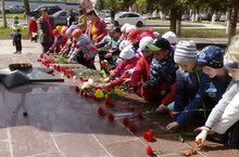 Сотрудники и воспитанники МБДОУ №12 возложили цветы в память павшим в Великой Отечественной Войне к памятнику "Вечный огонь".