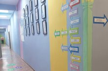 Когда были готовы и установлены таблички со словесным обозначением, поняли, что наша среда не будет учитывать восприятие самих детей, так как им не всегда легко найти ориентиры, чтобы быть самостоятельными. Знаки, схемы, таблички с названиями и номерами кабинетов — всё для взрослых. А детям непонятно и не так очевидно!