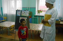 Медсестра Закирова С.Х. провела с детьми старшей группы беседу о прививках. Она в доступной для детей данного возраста форме объяснила почему не нужно бояться прививок , о пользе вакцинации.