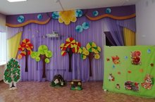 Каждый праздник — это целое событие в жизни нашего детского сада, проникнутое атмосферой радости. И прежде всего оно находит отражение в оформлении музыкального зала. Наши талантливые педагоги своими руками создают украшения и элементы декора. Такая работа объединяет коллектив, создаёт предпраздничную атмосферу, развивает фантазию. Оформление музыкального зала требует от сотрудников ДОУ хорошего вкуса и творческого подхода. Ведь, это место должно вызывать у дошкольников позитивные эмоции, именно здесь они чаще всего соприкасаются со сказкой и волшебством. Нарядное помещение способствует более глубокому детскому восприятию тематики праздника. Наша задача - постоянно находить новые, интересные дизайнерские идеи и восхищать детей и родителей своим творчеством.