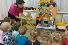 16 декабря 2016 г. Дети первой младшей группы посмотрели показ кукольного спектакля «Маша и медведь». В рамках плана работы на декабрь 2016.