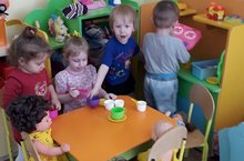 Как можно ознакомить детей с миром взрослых. Конечно только через игру. Благодаря игре ребята учатся встречать гостей, приглашать их к столу. Через игру у них формируются навыки поведения за столом, общение с гостями.