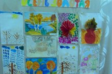 В детском саду организованна выставка детских рисунков.