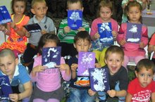 С детьми средней группы познакомились с техникой рисование смятой бумагой. Дети с огромным интересом рисовали белый снег, который укрыл деревья и землю.