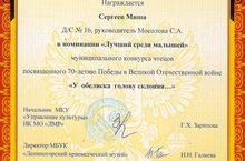 Воспитанники нашего детского сада Михайлов Ярослав, Сергеев Михаил принимали участие в муниципальном конкурсе чтецов, посвященного 70 - летию Победы в Великой Отечественной войне "У обелиска голову склоняя..."