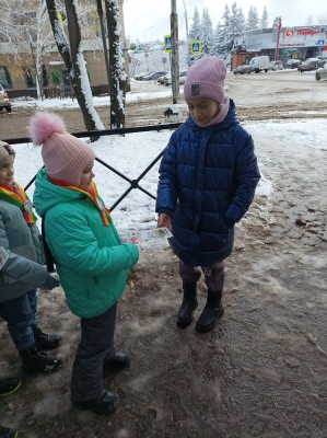 «Көзге каникуллар» профилактик акциясе кысаларында ЮИД отряды әгъзалары балалар бакчасы янындагы җәяүлеләр кичүе янында эшләделәр. Яшь ярдәмчеләр узучы балаларга " Яшь җәяүле белешмәлеге» таратканнар, ә өлкәннәргә үзләренең балаларын көннең кичке караңгы вакытында, яктырткыч элементлар – фликерлар - «фликер - безнең дустыбыз»белешмәлеге белән тәэмин итеп, аларны саклауның мөһимлеге турында искә төшергәннәр.