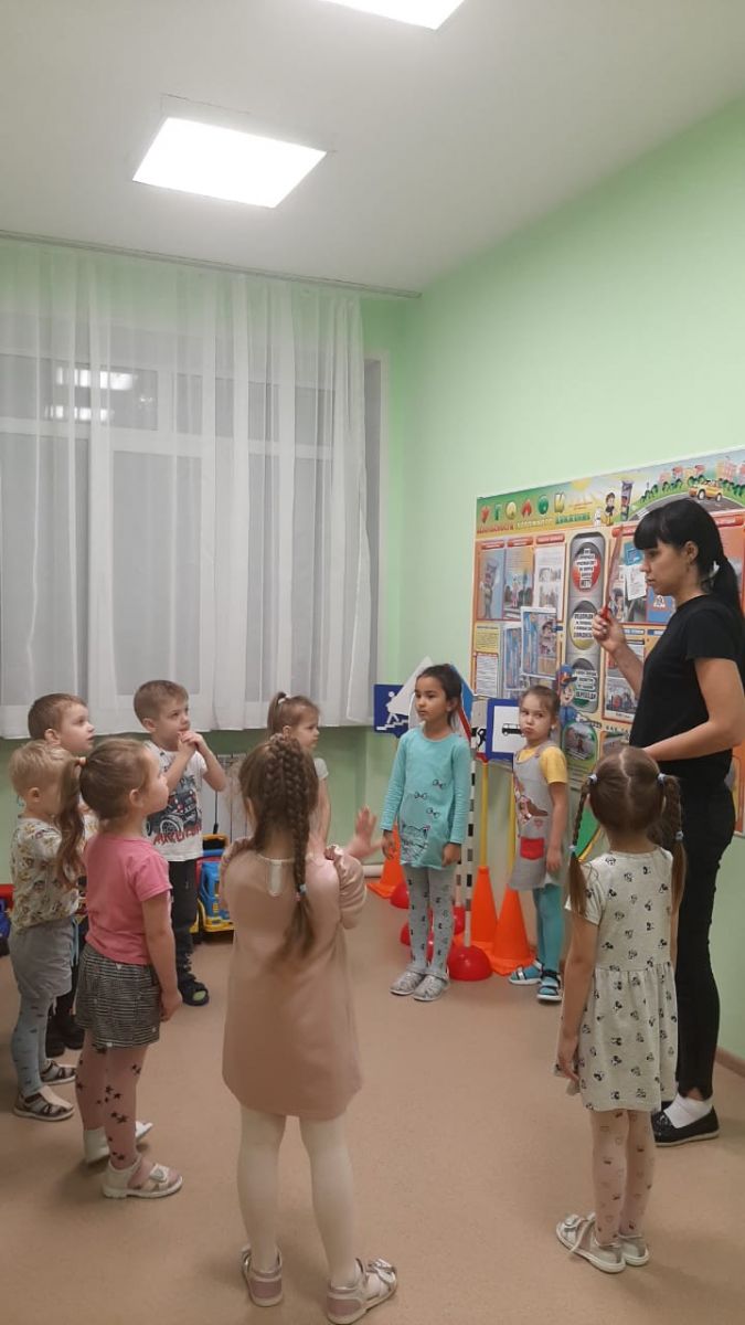 "Көзге каникуллар" профилактик чаралар кысаларында мәктәпкә әзерлек төркемендә тәрбияләнүчеләр юл йөргәндә узеңне куркынычсыз тоту кагыйдәләре буенча белемнәрен ныгыттылар.