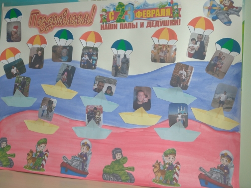 С праздником “23 февраля- Днём защитников Отечества” поздравили сегодня наши воспитанники своих дорогих и любимых пап и дедушек. Помимо праздничной программы, каждая группа приготовила коллажи и стенгазеты с поздравлениями и приятными пожеланиями.