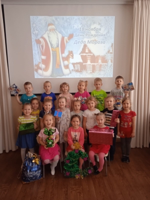 В нашем детском саду подготовка к празднованию Дня рождения Деда Мороза началась задолго до его начала. Проводились беседы о Деде Морозе, просматривались иллюстрации, прошел вечер загадок о сказочном герое. 18 ноября наступил долгожданный праздник. Дети старшего возраста в этот день просмотрели красочную презентацию «День рожденья Деда Мороза» и нарисовали ему поздравительные открытки, некоторые сделали подарки своими руками из пластилина, цветной бумаги, природного материала.Этот праздник доставил детям много удовольствия, восторга. Такие мероприятия позволяют формировать у детей веру в чудо, веру в добро. Ведь вера в чудо развивает у детей фантазию, творческое мышление, поощряет способность ребенка мечтать. Именно это в дальнейшем поможет ему ставить цели в жизни, справляться с неудачами, смело смотреть в будущее. ФОТО