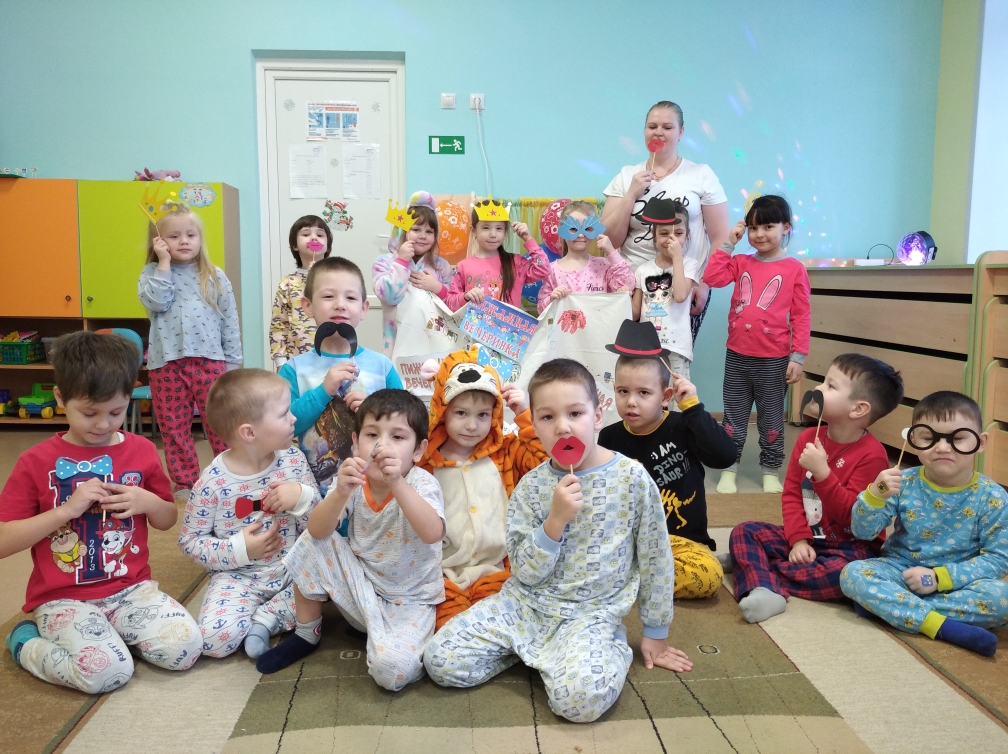 Яраткан пижамаңны киеп, бер нинди кагыйдәләргә дә карамыйча күңел ачудан да кызыграк нәрсә, бармы икән ул бала өчен? Бәйрәм кызык булсын өчен, бары тик дуслар һәм күңелле тамаша гына кирәк. Бу көннәрдә зурлар төркеме балалары нәкъ менә шундый кичәдә рәхәтләнеп күңел ачтылар. Балалар үзләренең яраткан пижамаларын бер берсенә күрсәттеләр, төрле эстафеталарда катнаштылар, кызыклы уеннар уйнадылар, хәттә фотосессиядә дә катнаштылар. Кичә дискотека белән тәмамланды. Иң мөһиме – балаларның күзләрендә бары тик соклану гына иде. Димәк, кичә нәтиҗәле һәм уңышлы узган!