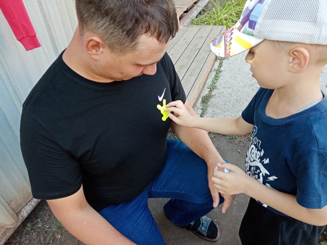 Знать о безопасности нужно всем маленьким пешеходам и их родителям. Специально для родителей наши воспитанники придумали яркие фликеры, они отражают свет автомобильных фар и защитят в темноте на улице.