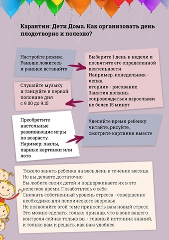 Карантин: Дети дома. Как организовать день плодотворно и полезно? 01.04.2020