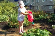Урожай весь соберут".В течение всего летнего периода в детском саду действует познавательно- исследовательский проект «Весёлая огородия». Коллектив детского сада создал условия стимулирующих интерес к исследовательской деятельности, раскрытие творческого и интеллектуального потенциала дошкольников , вовлечение детей в практическую деятельность по выращиванию культурных огородных растений нашего края.