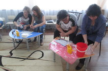 Мастер-класс показала сегодня педагогам опытный воспитатель Мингазова Галина Владимировна. Она ознакомила всех со способами приготовления кинетического песка в домашних условиях, а также с различными способами лепки и разными вариантами игр.