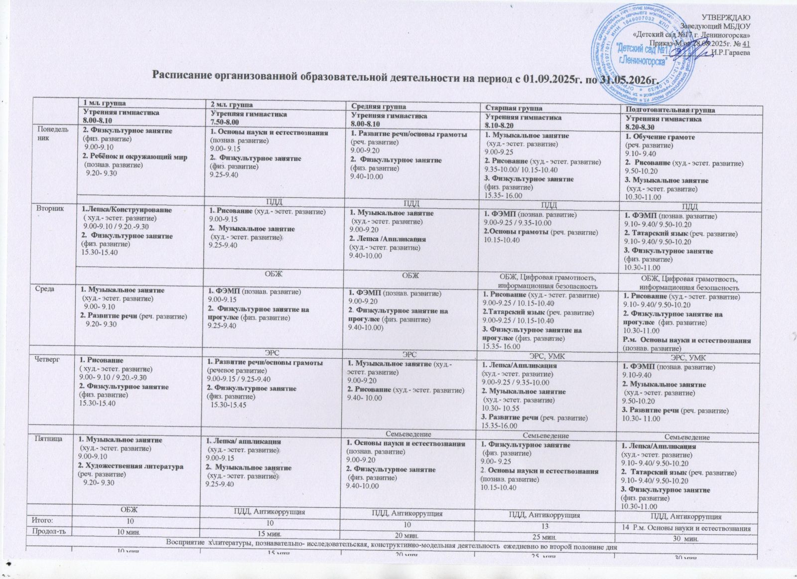 Расписание Организованной образовательной деятельности на 2025-2026 учебный период