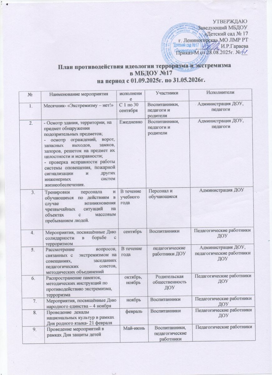 План противодействия террору и экстремизму на период с 01.09.2025г. по 31.05.2026г.