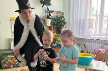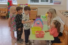 С целью формирования целостного мировидения, для детей средней группы проведено развлечение «О, сколько нам открытий чудных…». Вместе с профессором Почемучкиным ребята побывали в лаборатории и при помощи опытов узнали, что воздух легче воды, вода может склеивать, свойства сухого и мокрого песка и многое другое. Госпожа «Наука» провела с ребятами викторину. Дети учились самостоятельно находить ответы на проблемные вопросы, решали проблемные ситуации, устанавливали причинно-следственные связи, выдвигали гипотезы на основе элементарного экспериментирования.// Тулы дөньяны күзаллау формалаштыру максатында, урта төркем балалары өчен "О, безгә күпме могҗизалар ачышы..." күңел ачу чарасы үткәрелде. Профессор Почемучкин белән бергә балалар лабораториядә булдылар һәм тәҗрибә ярдәмендә һаваның судан җиңелрәк булуын, суның корыган һәм юеш комның үзлекләрен һәм башка бик күп нәрсәләрне белделәр. “Фән” ханым балалар белән викторина үткәрде. Балалар проблемалы сорауларга мөстәкыйль рәвештә җаваплар табарга өйрәнделәр, проблемалы ситуацияләрне хәл иттеләр, сәбәп-тикшерү бәйләнешләрен билгеләделәр, гади эксперимент нигезендә гипотезалар тәкъдим иттеләр.