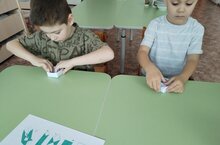 В дошкольном возрасте развитие научно-технического творчества у детей формируется в ходе познания свойств предметного мира. Творчество проявляется в продуктивной деятельности. На занятии по конструированию дети разновозрастной группы мастерили коробку из бумаги по опорной схеме. // Мәктәпкәчә яшьтә балаларда фәнни-техник иҗатны үстерү фән дөньясының үзенчәлекләрен танып белү барышында формалаша. Иҗат продуктив эшчәнлектә күренә. Конструкцияләү буенча дәресләрдә төрле яшьтәге балалар терәк схемасы буенча кәгазьдән тартма ясаганнар.
