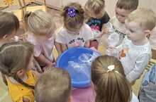 В 1 младшей группе был проведён "Час науки" - весёлый эксперимент «Вода меняет цвет».
