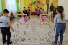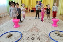 На улице пасмурно и дождь, но наши ребята продолжают развивать и совершенствовать свои движения, упражняться в беге, прыжках, лазанье, бросанье, ловле и т. д. Лучшее средство физического воспитания детей- это подвижные игры. Именно они помогают дошкольникам развиваться не только физически, но и стимулируют умственную активность, развивают эмоциональную и социальную сторону ребенка. А самое приятное то, что во время игр дети быстро усваивают новые навыки.// Урамда болытлы һәм яңгыр ява, әмма безнең егетләр үз хәрәкәтләрен үстерүне һәм камилләштерүне дәвам итәләр, йөгерүдә, сикерүдә, менүдә, ыргытуда, тотуда һ.б. күнегүләр ясыйлар. балаларны физик тәрбияләүнең иң яхшы чарасы - хәрәкәтчән уеннар. Нәкъ менә алар мәктәпкәчә яшьтәге балаларга физик яктан гына түгел, ә акыл активлыгын стимуллаштыра, баланың эмоциональ һәм социаль ягын үстерә. Иң яхшысы-Уеннар вакытында балалар яңа күнекмәләрне тиз үзләштерәләр.