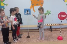 Детям подготовительной к школе группы были предложены дидактические игры: «Кто отличник-пешеход?», «Путешествие на машинах», «По дороге», «Говорящие знаки».