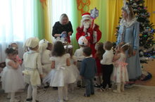 У нарядной елки ребята встретились со Снеговиком, Дедом Морозом и Снегурочкой. Малыши рассказали им стихотворения, исполнили веселые песни, зажигательные танцы и, конечно, получили долгожданные новогодние подарки.