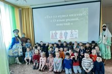 В нашем детском саду сотрудники Центральной библиотеки имени Г. Тукая провели мероприятие посвященное ко дню Родного языка “Самый красивый язык в мире”. Дети познакомились с чувашской народной сказкой «Мышка вострохвостик», отгадывали загадки, поиграли в народные татарские игры «Тубетей», «Колечко». «Йөзек салыш”. Была организована книжная выставка татарских , чувашских, русских народных сказок. Ребята остались довольны мероприятием и получили огромный заряд бодрости и отличного настроения./Безнең балалар бакчасында Г. Тукай исемендәге Үзәк китапханә хезмәткәрләре Туган тел көненә багышланган "Дөньяда иң матур тел" дип исемләнгән чара үткәрделәр.Балалар чуваш халык әкияте «Мышка вострохвостик» белән таныштылар, табышмаклар чиштеләр, «Тубәтәй», «Йәзек салыш »халык уеннары уйнадылар. Татар , чуаш, рус халык әкиятләреннән китап күргәзмәсе оештырылды. Балалар бик канәгать булып калдылар.