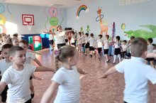 В нашем детском саду состоялся танцевальный флешмоб с дошкольниками, посвященный международному дню родного язык «Говори на родном языке». Все воспитанники двигались ритмично под татарскую плясовую музыку. Благодаря танцу воспитывается любовь к культуре татарского народа./Безнең балалар бакчасында Халыкара туган тел көненә багышланган «Туган телдә сөйләш " дигән бию флешмобы булып узды. Балалар татар бию музыкасына ритмик рәвештә хәрәкәт иттеләр. Бию ярдәмендә татар халкының мәдәниятенә мәхәббәт тәрбияләнә.
