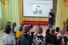 Интересную образовательную деятельность по обучению дошкольников татарскому языку с использованием мультимедийной презентации на тему: “Путешествие в мир творчества татарских писателей”, а именно: Хади Такташ, Фатих Амирхан, Гомер Баширов, организовала для воспитанников Савочкина Г.З. . Дети подготовительной группы с удовольствием слушали, узнавали интересные исторические факты о жизни и творчестве поэтов, знакомились с их литературными произведениями. / Балалар бакчасында мәктәпкә әзерлек төркемендә “Татар язучылары дөньясына сәяхәт” дигән темага дәрес узды. Балалар язучыларнын тормыш юлы hәм иҗат турында белделәр. Аларның китаплары белән таныштылар.