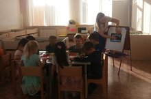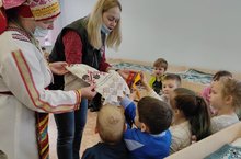Представители ДК Виктория Андреевна и Мария Романовна познакомили воспитанников подготовительной к школе группы с национальностями Республики Татарстан. Они рассказали о национальных костюмах, головных уборах, традициях татар, мордвы, чувашей, удмуртов, марийцев и т.д. Ребята поиграли в национальные подвижные и дидактические игры, посмотрели фильм и на память получили наклейки «Народы Республики Татарстан».