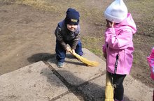 В рамках акции «Эковеснна» М.А. Холодкова продолжает учить пользоваться вениками; воспитывать бережное отношение к природе; закреплять умение трудиться в коллектив воспитанников 2 младшей группы.