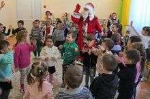 28 декабря 2018 года в нашем саду прошел новогодний утренник для самых маленьких. К детям приходили в гости Снегурочка, Зайка, Мишка. С появлением Деда Мороза начался настоящий праздник с песнями и танцами, хороводами вокруг елки. Разноцветные, сверкающие гирлянды и ярко украшенная елочка принесли детям ощущение чуда. В конце праздника все дети получили долгожданные подарки от Деда Мороза.
