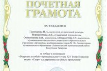 Поздравляем Нуриахметову А.В., музыкального руководителя, с Дипломом 1 степени в Муниципальном конкурсе чтецов, посвященном 100-летию ВЛКСМ, 73-й годовщине Победы в ВОВ, Году объединения национальностей и народов России. Желаем Вам творческих успехов и очередных побед!!!