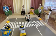 В целях повышения интереса детей к изучению правил дорожного движения воспитанники подготовительной группы показали театрализованное представление под названием "Сказка о Зайке - Побегайке и волшебном Светофоре". Лесные звери рассказали о дорожных знаках, об опасностях, которые могут возникнуть на дороге, а также учили малышей переходить проезжую часть дороги.