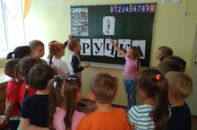 Балаларны котларга клоун Бим килде. Балалар табышмакларга бердәм җавап бирделәр, үзләренең белемнәрен, осталыкларын һәм талантларын күрсәттеләр. Алар яңа уку елы башлануга багышланган җырлар җырладылар, шигырьләр сөйләделәр.Бәйрәм бик бай эчтәлекле булды, балаларга бик күп шатлык һәм якты тәэсирләр алып килде. Балалар бик күп онытылмаслык хис-кичерешләр алдылар. -