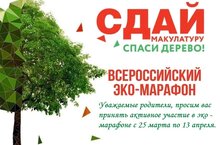 Уважаемые родители, просим вас принять участие во Всероссийском эко - марафоне "Сдай макулатуру - спаси дерево" с 25 марта по 13 апреля.