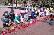 Сегодня в нашем детском саду состоялось мероприятие, посвященное дню Победы в Великой Отечественной войне. В каждой группе состоялось тематическое мероприятие, для воспитанников старшей и подготовительной к школе групп проведено праздничное мероприятие в музыкальном зале, на котором детям были показаны презентации о ходе Великой Отечественной войны, тематический мультфильм. Сами воспитанники исполнили стихи и песни, подготовленные к сегодняшнему празднику. И, конечно, ребята с удовольствием приняли участие в играх, показав свою ловкость, смекалку и быстроту. По окончании праздника воспитанники в сопровождении воспитателей отправились к Вечному огню и возложили цветы к памятнику солдатам великой войны.