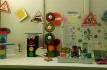 В соответствии с годовым планом работы в нашем саду сегодня проходит выставка поделок, изготовленных детьми вместе с родителями на тему "Безопасная дорога для малышей". На выставке представлены макеты светофора, дорожных знаков и схемы прилегающих к детскому саду участков дорожного движения.