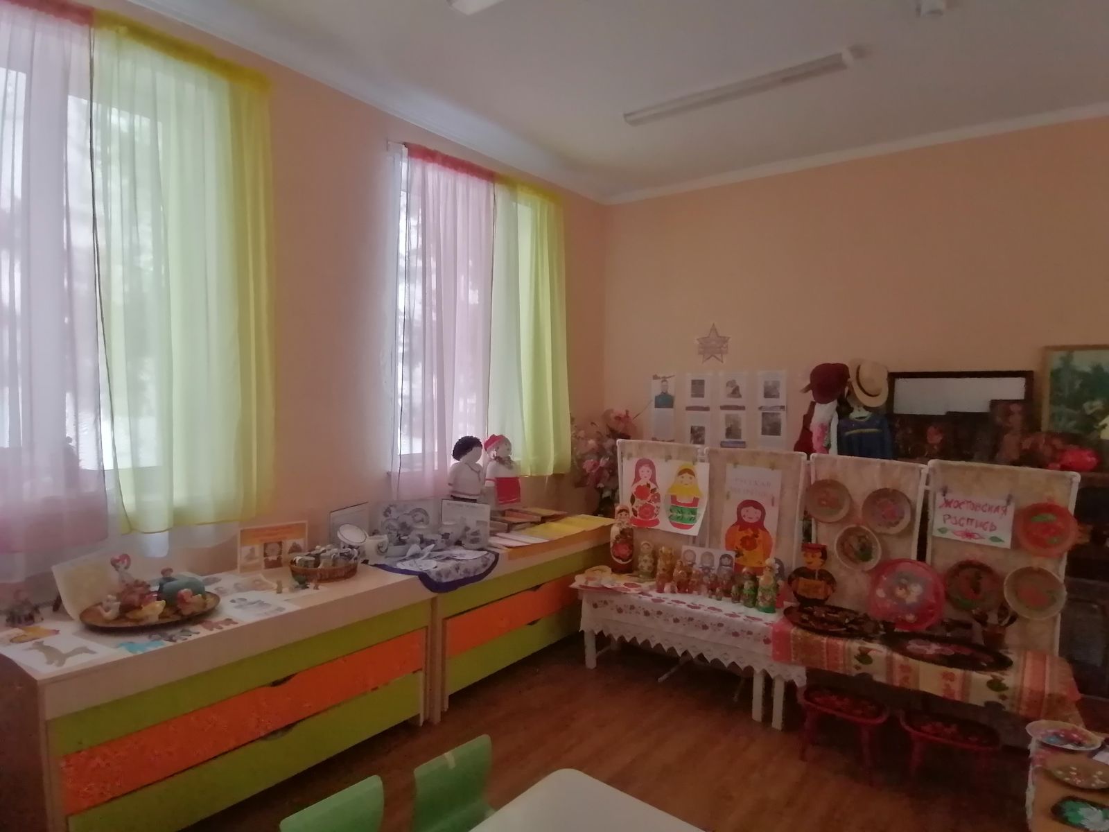 В мини-музее нашего детского сада проходит выставка народных промыслов, которую мы собирали вместе с нашими воспитанниками. Каждая группа подготовила свою часть выставки, здесь представлена и посуда с гжельской росписью, и жостовская роспись, и хохломская роспись,и матрешки. Детям самим было очень интересно посмотреть, что же получилось общими усилиями, а еще они пригласили родителей на нашу выставку.