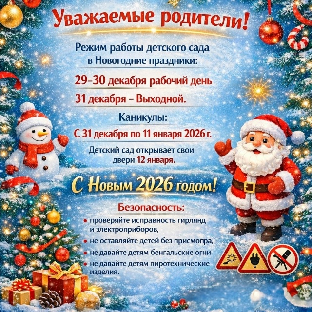 Режим работы детского сада в Новогодние праздники 2025—2026 гг.