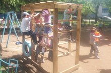 Летняя прогулка - это всегда весело, шумно и радостно. Однако дети должны не только играть в организованные воспитателями игры, но и обязательно побегать-полазить. Именно с целью обновить оборудование на физкультурном участке мы обратились за помощью к нашим родителям. Руками наших пап была сооружена замечательная конструкция для лазания детей среднего и старшего возраста. Восторгу ребят не было предела!
