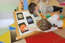 Вместе с воспитателем малыши совершили увлекательное путешествие в мир звёзд и планет. Ребята с большим интересом слушали рассказ о смелых космонавтах и ракетах, рассматривали яркие картинки с изображением космических объектов: Солнца, Луны, звёзд и планет.