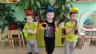 Во второй младшей группе нашего детского сада прошло музыкальное мероприятие «Веселый оркестр». В процессе игры на музыкальных инструментах ярко проявляются индивидуальные черты каждого исполнителя: наличие воли, эмоциональности, сосредоточенности, развиваются и совершенствуются музыкальные способности. Обучаясь игре на детских музыкальных инструментах, дети открывают для себя удивительный мир музыкальных звуков, осознаннее различают красоту звучания различных инструментов. У них улучшается качество пения, музыкально - ритмических движений, дети чётче воспроизводят ритм. Сегодня ребята организовали свой маленький оркестр. Каждый выбрал себе музыкальный инструмент по желанию. Веселый получился оркестр.