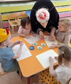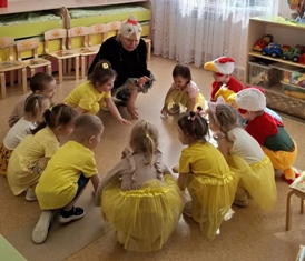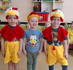 Сегодня во второй младшей национальной группе царила особая атмосфера веселья и радости. Тематический день под названием «Цыплятки вышли погулять» собрал малышей вместе, чтобы весело провести время и познакомиться ближе с миром домашних птиц. Все дети пришли нарядившись в яркий жёлтый цвет — символ солнца и тепла. Некоторые малыши даже переоделись в забавные костюмы петушков и цыплят, добавив яркости празднику. И воспитатель группы сама стала частью действа, превратившись в заботливую курочку-наседку.