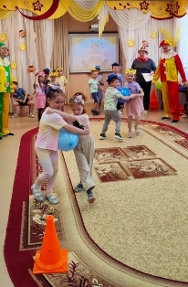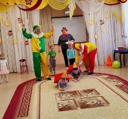 Бурю положительных эмоций и смеха детям доставил музыкально-спортивный праздник-проказник, на который пришли клоуны Ириска и Клепа. Они разыгрывали детей, шутили над ними, проводили веселые игры - «Черепахи», «Пингвины», «Музыкальная шляпа» и другие аттракционы и соревнования.