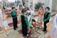 Игровой фольклор татарского народа богат и разнообразен. Неоценим он и по своему двигательному содержанию. Ходьба, бег, прыжки, метание, бросание, ловля и другие виды движений – все это можно найти в татарских народных играх. Почти все они в большей или меньшей степени способствуют формированию жизненно важных навыков, совершенствованию физического развития, воспитывают необходимые морально – волевые качества. Игра укрепляет организм детей и служит залогом здоровья. Использование игр по определенной системе и в сочетании с другими видами физических упражнений обеспечивает высокую эффективность воспитания необходимых черт характера. С этой целью воспитатель по обучению татарскому языку Зиганшина Р.Я. ознакомила и проиграла с детьми татарские народные игры: «Капкалы», («Ворота»), «Серый волк» («Соры бүре»), «Сядь, сядь, Малика (Утыр, утыр Мәликә!»), «Түбәтәй» («Тюбетейка»), «Займи место» («Буш урын») и др. С помощью подвижных игр создали у детей бодрое, радостное настроение. Но и через народные подвижные игры прививаем любовь к родному краю, к своему городу, к своим традициям и обычаям, формируем интерес к изучению игр других национальностей.